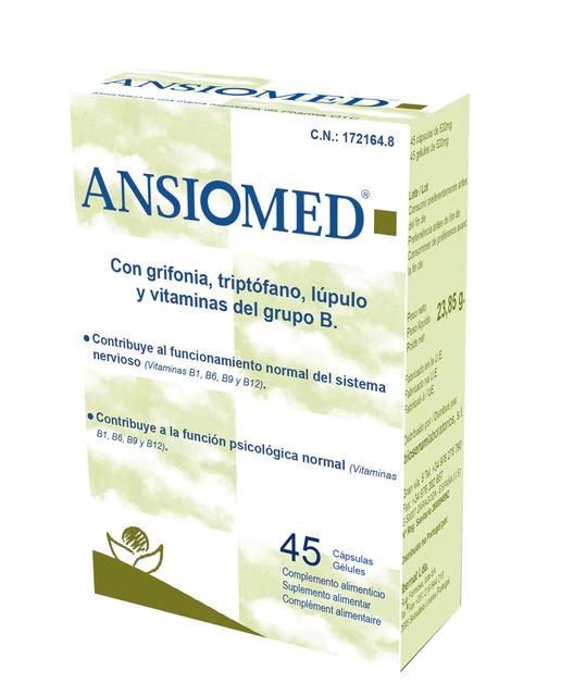 Complemento alimenticio que contribuye al funcionamiento normal del sistema nervioso. Favorece un estado de ánimo normal, relajación, bienestar mental y control de la sensación de hambre. Además, contribuye al funcionamiento adecuado del sistema nervioso.