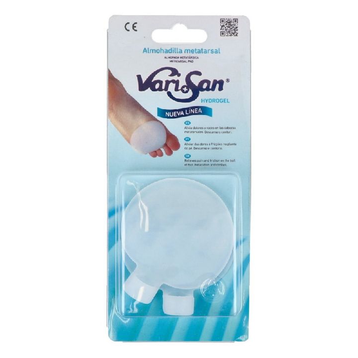 Almohadilla para la planta del pie antideslizante. Varisan Almohadilla Metatarsal Hydrogel es una solución concentrada en una cómoda plantilla pequeña elaborada con silicona, que se adhiere a la perfección evitando que el pie se deslice. Es completamente transparente y fina, por lo que no se nota su presencia. Su formato permite lavarlas tantas veces como se desee, y se pueden utilizar tanto en sandalias como en zapatos cerrados. ¿Para qué está indicado? Está indicado para ofrecer amortiguación a la planta del pie. ¿Cómo se aplica? Retirar la lámina protectora de la almohadilla y colocar correctamente en el interior del zapato.