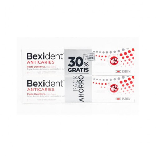 Duplo Bexident Pasta Anticaries ofrece una triple acción anticaries, gracias a la innovadora tecnología Cranpearls Tech. Este primer anticaries con tecnología Cranpearls Tech evita la colonización de las bacterias de manera efectiva. Beneficios: Bexident Anticaries contiene una innovadora combinación de fluoruro sódico y extracto de arándano rojo, lo que proporciona una acción antiadhesiva y antimicrobiana, además de proteger dientes y encías. El extracto de arándano rojo, cuyo principal componente activo son las proantocianidinas, ha demostrado en múltiples estudios inhibir la formación de placa bacteriana y mantener el pH de la cavidad bucal. De esta forma, se previene la formación de un biofilm o capa precursora de la placa bacteriana.