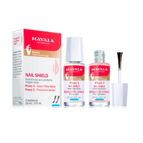 El tratamiento MAVALA ESCUDO PROTECTOR es un producto en dos fases que forma una protección física para tus uñas, resguardándolas de las tareas diarias y de otros elementos que podrían dañarlas. Este tratamiento protege tus uñas de la rotura, la descamación y los impactos. Se puede combinar con otros tratamientos como MAVALA CIENTÍFICO y/o NAILACTAN para regenerar y fortalecer la uña. MODO DE EMPLEO: